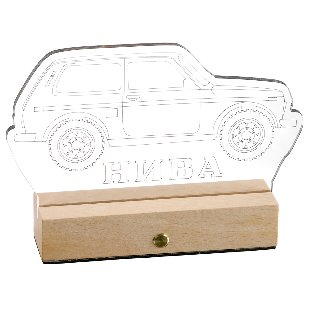 Небольшой настольный декоративный светильник-ночник с изображением автомобиля "Нива" ВАЗ 2121.
