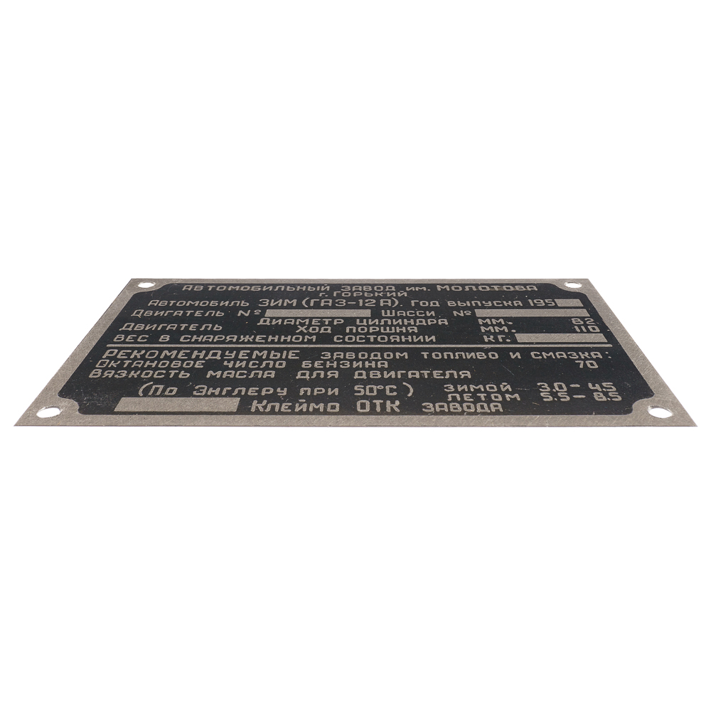 Подкапотная табличка (шильдик) на ГАЗ 12А ЗИМ