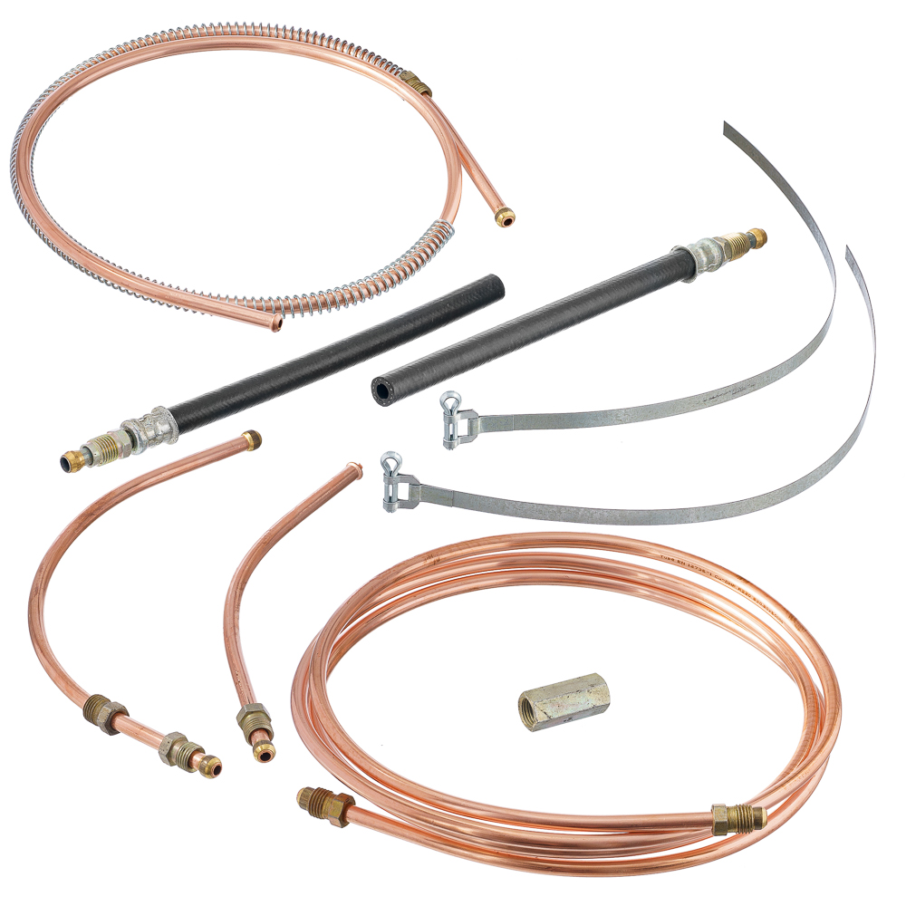 Предлагаемые комплекты включают в себя: трубки диаметром 8 мм, топливные шланги (пр-во СССР), ленточные хомуты.