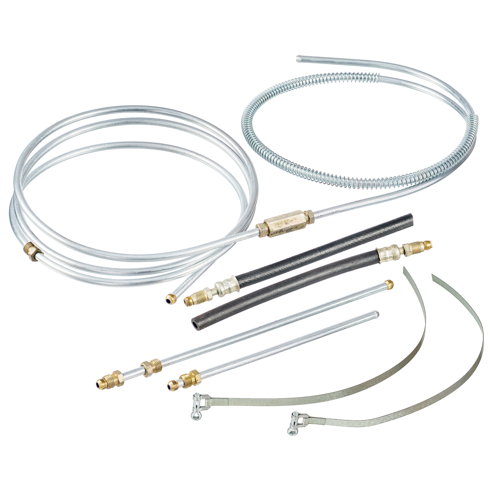 Магистраль - цельная длиной 3700 мм, что осложняет ее монтаж. Устанавливать такую трубку не очень удобно, однако сделать это вполне возможно. Преимущество данного набора - отсутствие дополнительного соединения.