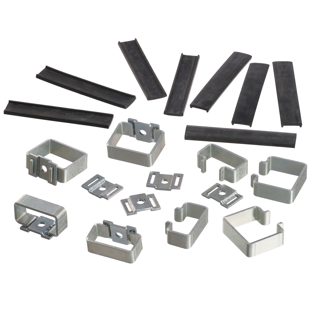 Стяжки фигурные (4 больших и 4 малых) и резиновые прокладки 8 шт. В комплект входят, также, фигурные ответные пластины (8 шт).