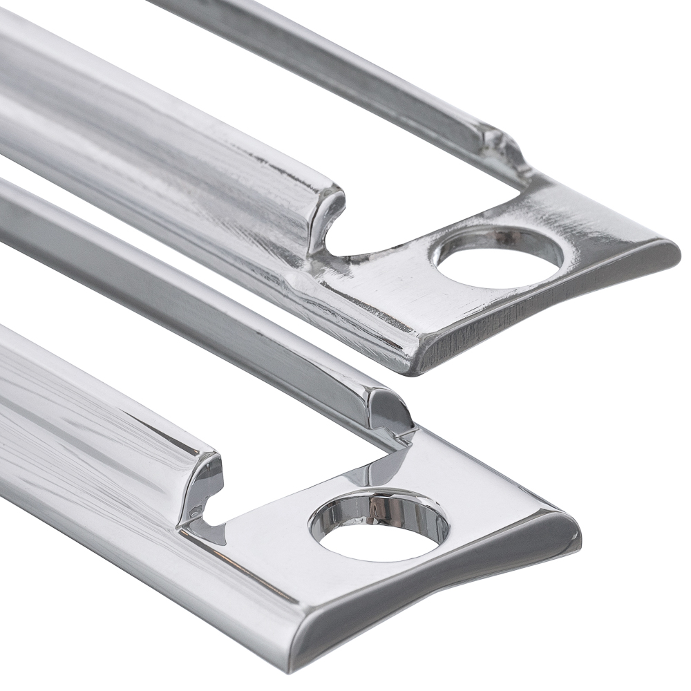 Отлиты из ЦАМа по оригинальному образцу в соответствии с заводским исполнением и покрыты хромом по классической технологии (медь - никель - хром).
