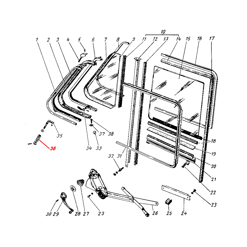 Пружина зажима оси стекла вентиляции устанавливается на оси рамки форточки передней двери на ГАЗ 21, 24, 14.