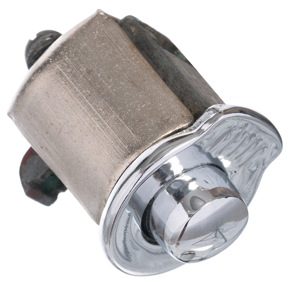 Механизм с кнопкой в хорошем состоянии, снятый с автомобиля, заново хромирован по классической технологии медь-никель-хром на производстве компании "Солитон", специализирующейся на хромировании деталей для ретро автомобилей. Покрытие в данном варианте качественнее оригинального советского, поверхность более гладкая, блеск намного глубже. В предлагаемых деталях вы не найдете рисок и шероховатостей, они лучше отполированы. Мы даем гарантию на покрытие.