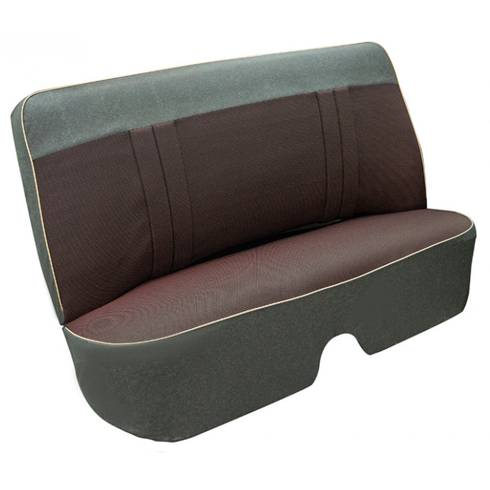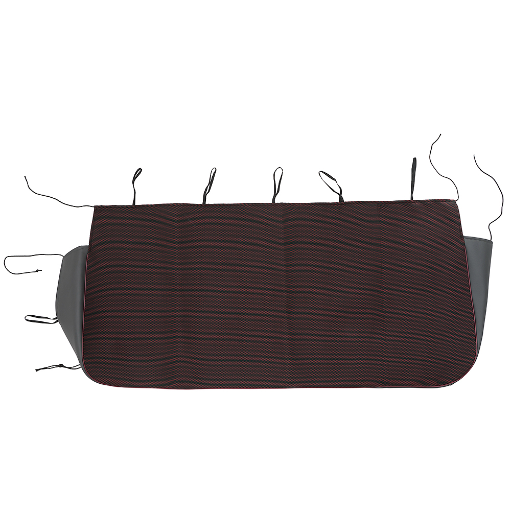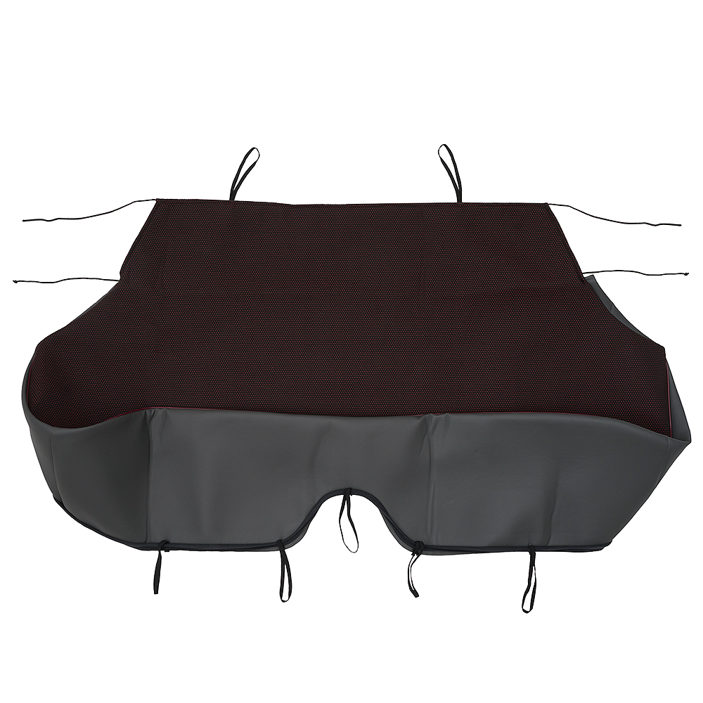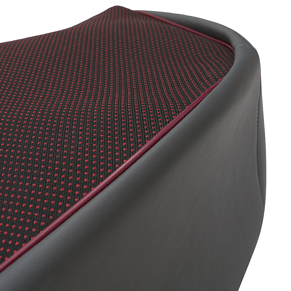 При пошиве применяется серый кожзаменитель и автомобильный жаккард красного цвета.