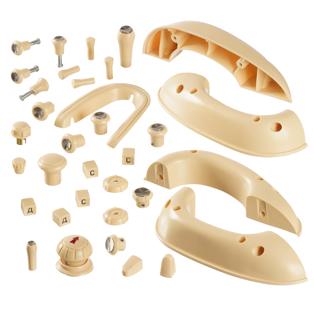 Комплект включает в себя подлокотники и все необходимые кнопки и ручки салона на ГАЗ 21 первой серии.