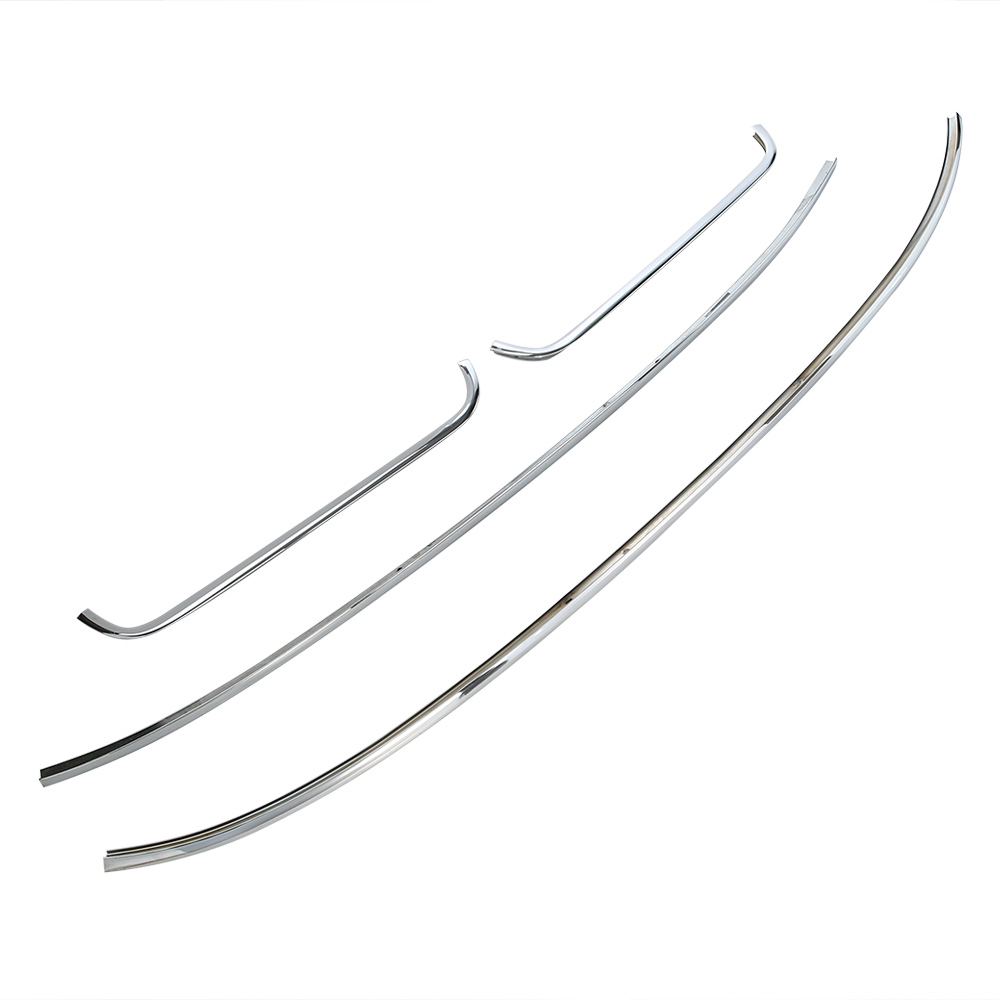 Комплект из 4-х новых окантовок ветрового стекла с хранения: верхняя, нижняя, левая, правая. Покрытие в хорошем состоянии, хром без вздутий и окислов. Возможны незначительные риски от хранения.