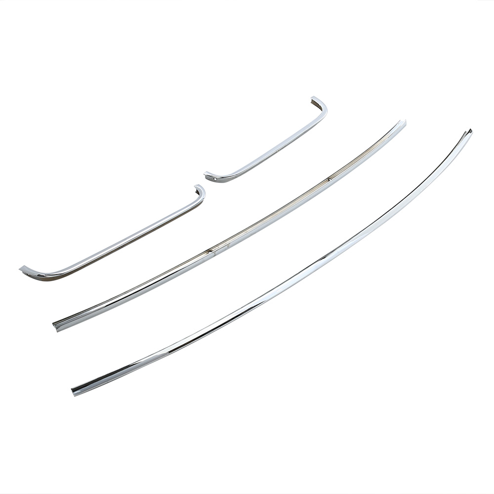 Комплект из 4-х новых окантовок окна задка с хранения: верхняя, нижняя, левая, правая. Покрытие в хорошем состоянии, хром без вздутий и окислов. Возможны незначительные риски от хранения.