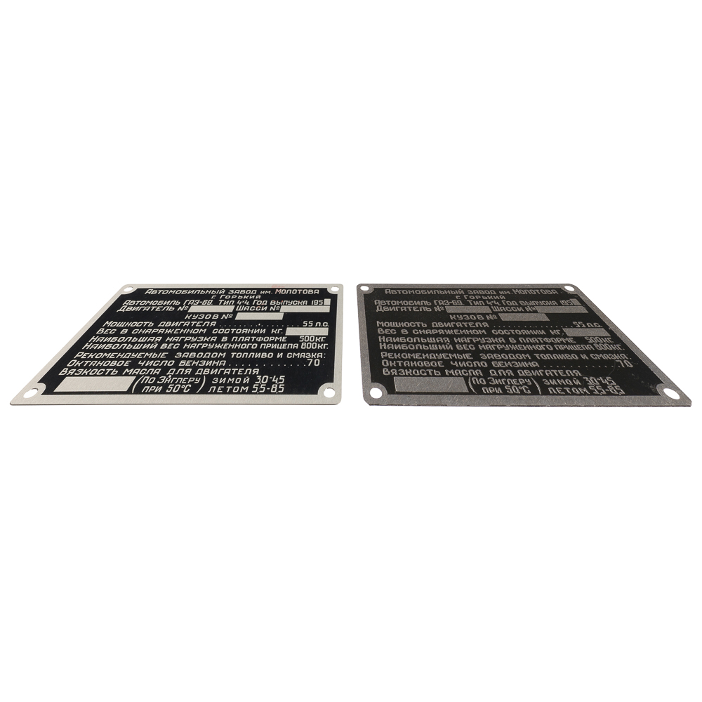 Подкапотная табличка (шильдик) на автомобиль ГАЗ 69.