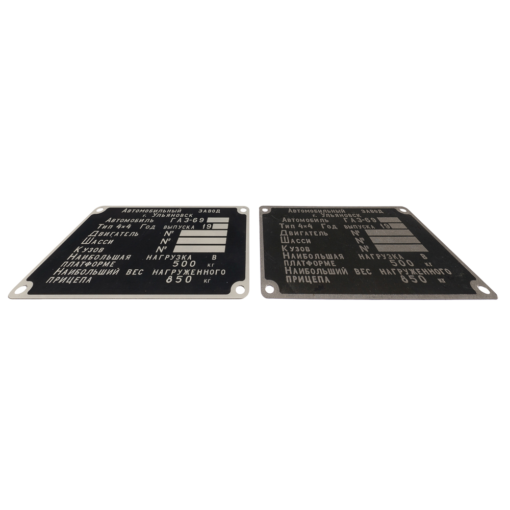Подкапотная табличка (шильдик) на автомобиль ГАЗ 69.