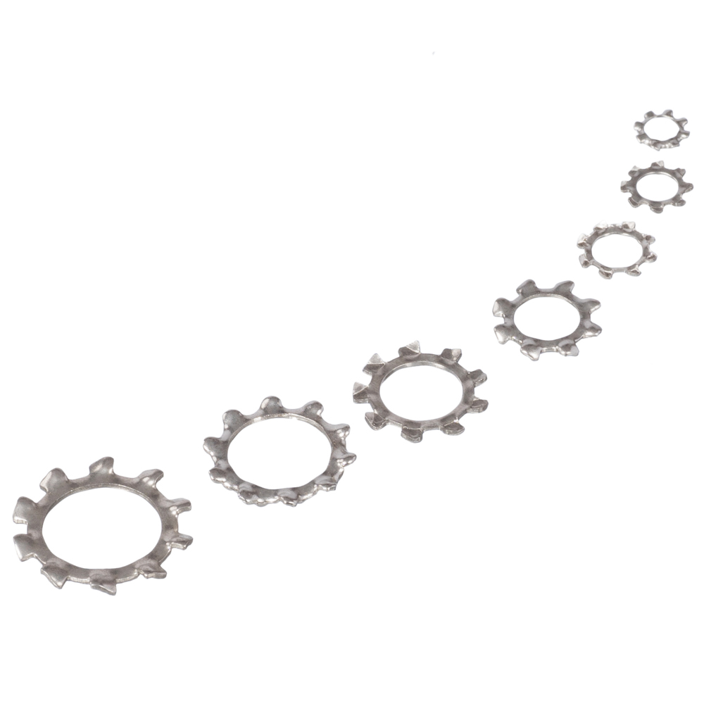 Нержавеющая шайба зубчатая с наружными зубьями: М4, М5, М6, М8, М10, М12, М14.