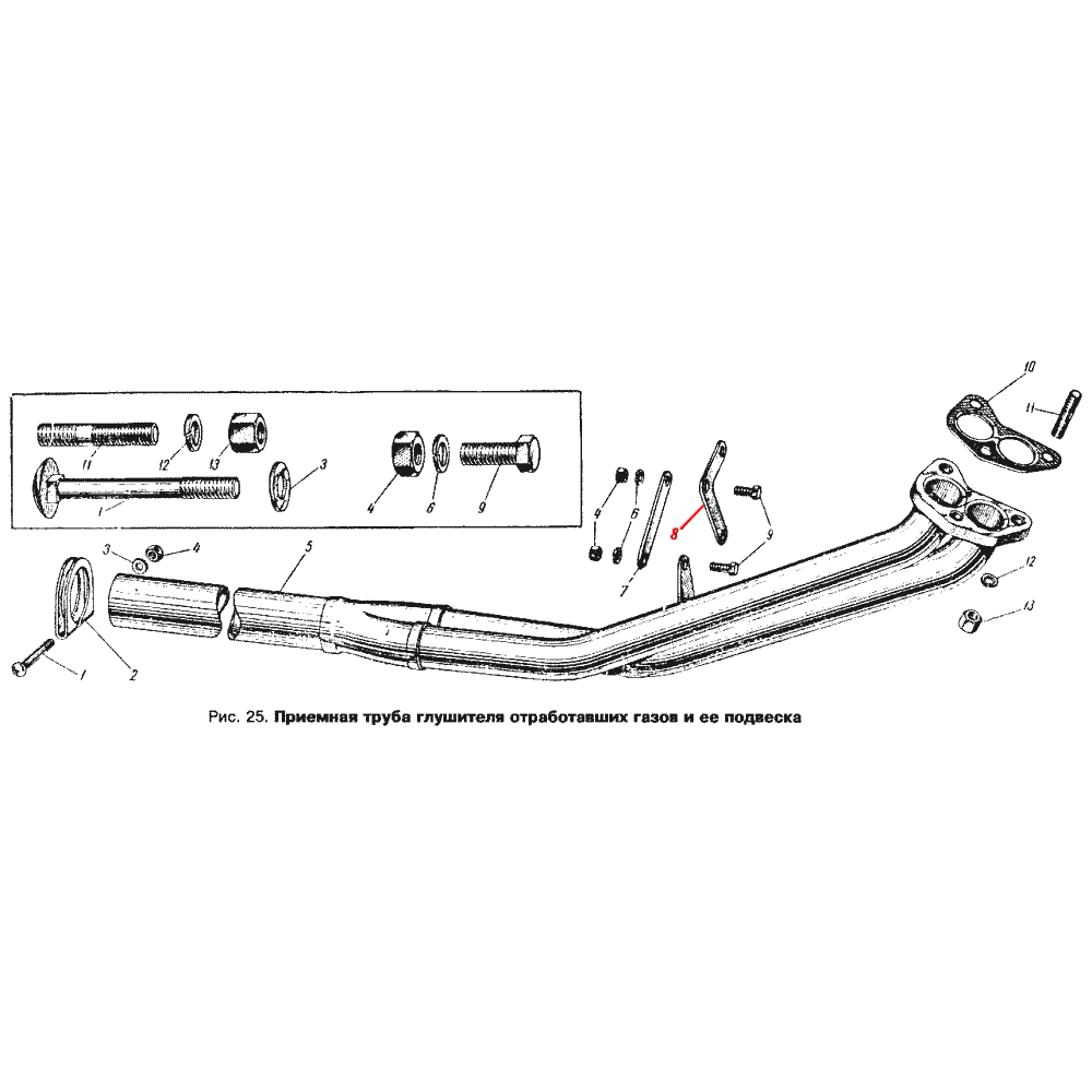 Кронштейн крепления приемной трубы к коробке передач на Москвич 408, 412, 2140, ИЖ 412, 2125, 2715