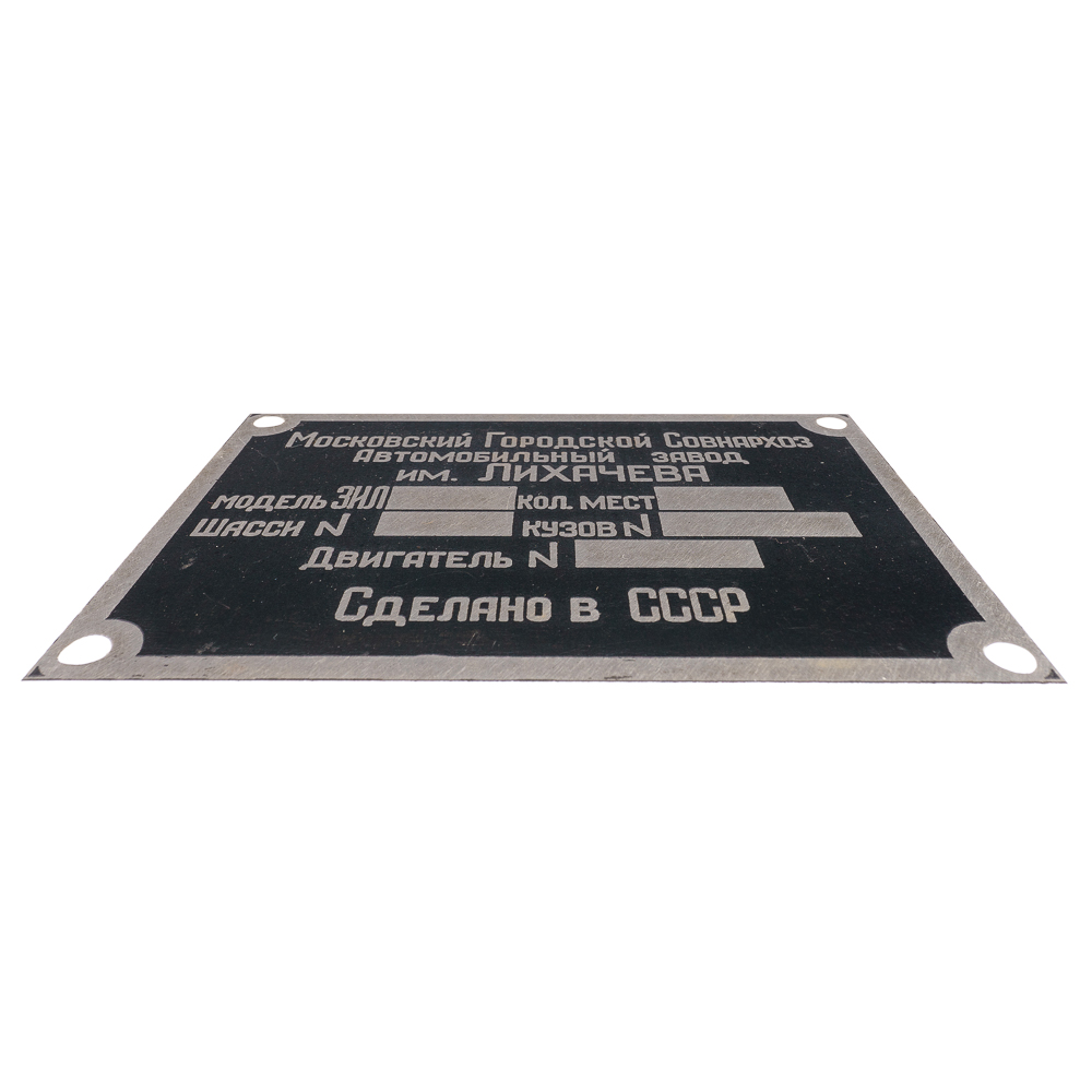 Подкапотная табличка (шильдик) на советский автобус представительского класса ЗИЛ 118 "Юность".
