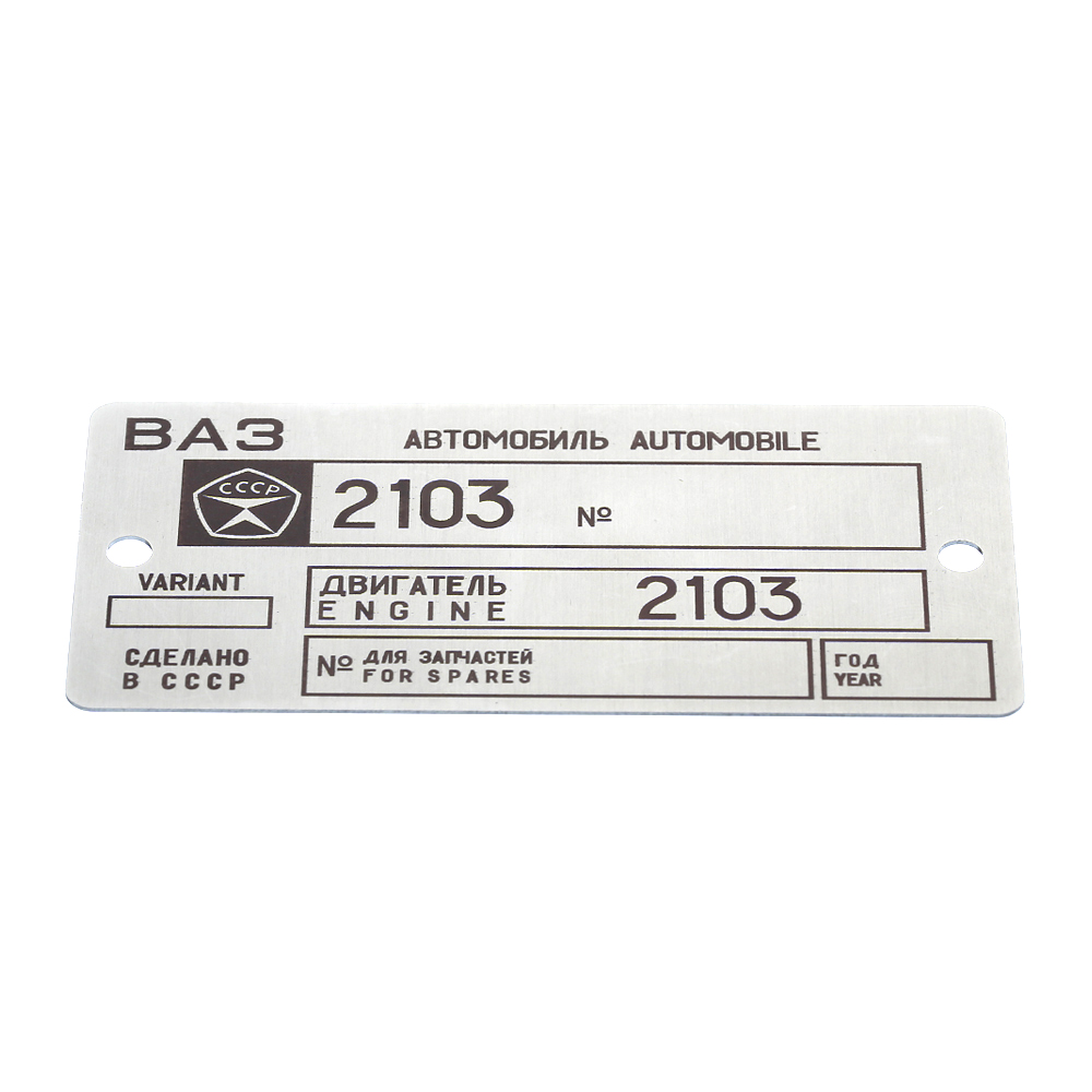 Шильдик (подкапотная табличка) изготовлен из алюминиевого сплава и является точной копией оригинальной таблички. Поверхность - матовая. Необходимые отверстия для крепления просверлены.