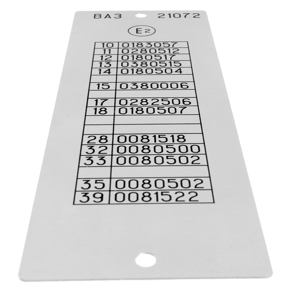 Информационная табличка соответствия нормам безопасности ИЭК ООН для экспортных модификаций ВАЗ 2107. На автомобилях для внутреннего рынка такая табличка не применялась.