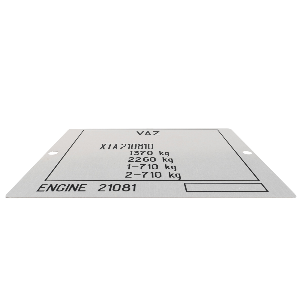 Шильдик (подкапотная табличка) изготовлен из алюминиевого сплава и является точной копией оригинальной таблички. Поверхность - матовая. Необходимые отверстия для крепления просверлены.