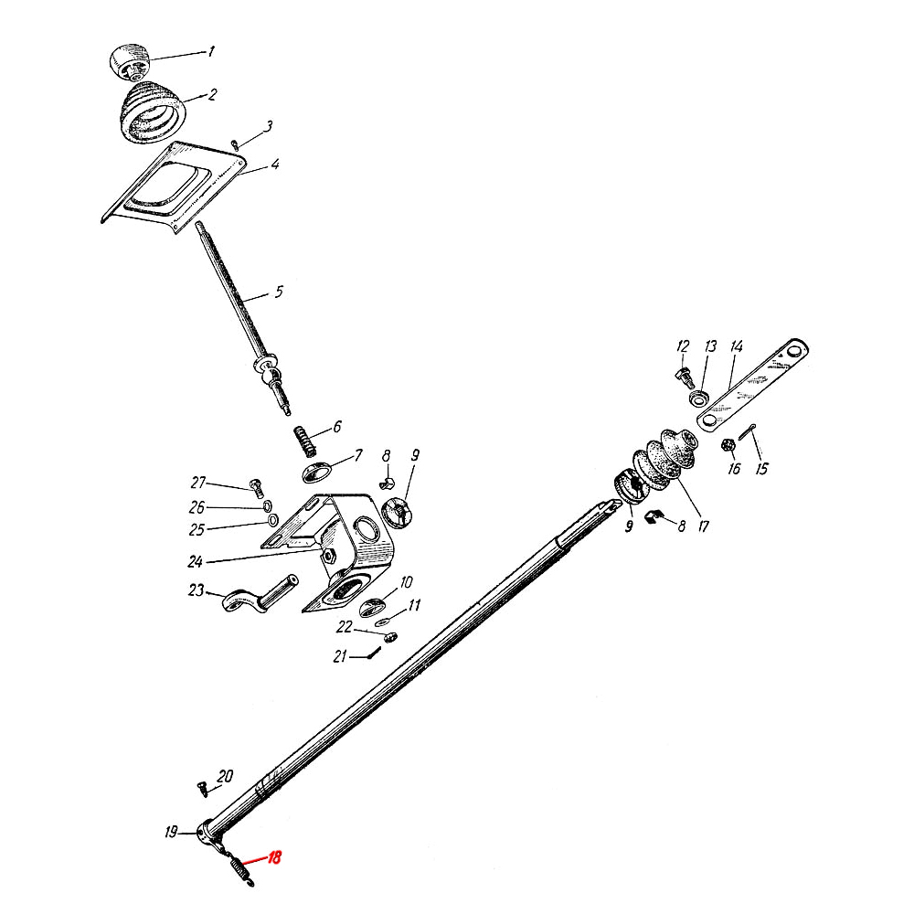 Пружина вала управления коробкой передач оттяжная на ЗАЗ 965 Горбатый Запорожец ранних модификаций, когда вал соединялся с коробкой без использования эластичной муфты (предположительно, до 1964 г.).
