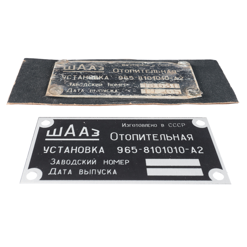 Информационная табличка (шильдик) для автономной отопительной установки (печки) ШААЗ на ЗАЗ 965 Горбатый Запорожец.