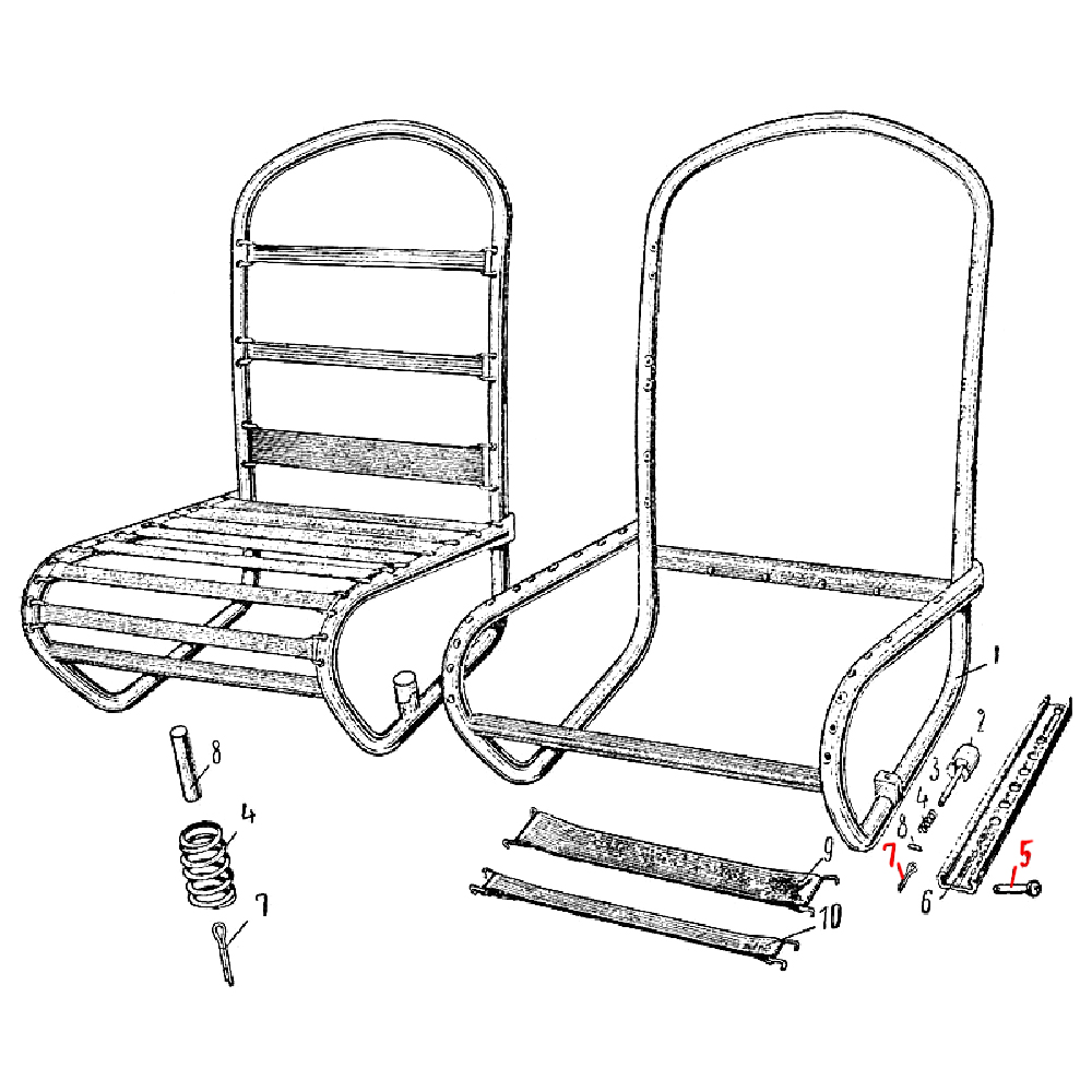 Палец в сборе со шплинтом для крепления салазок сидения к кронштейну.